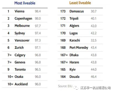 Viena, Austria, a fost în fruntea listei orașelor locuibile cu un scor general de 98,4 puncte și a primit note complete la patru din cele cinci itemi cu punctaj.